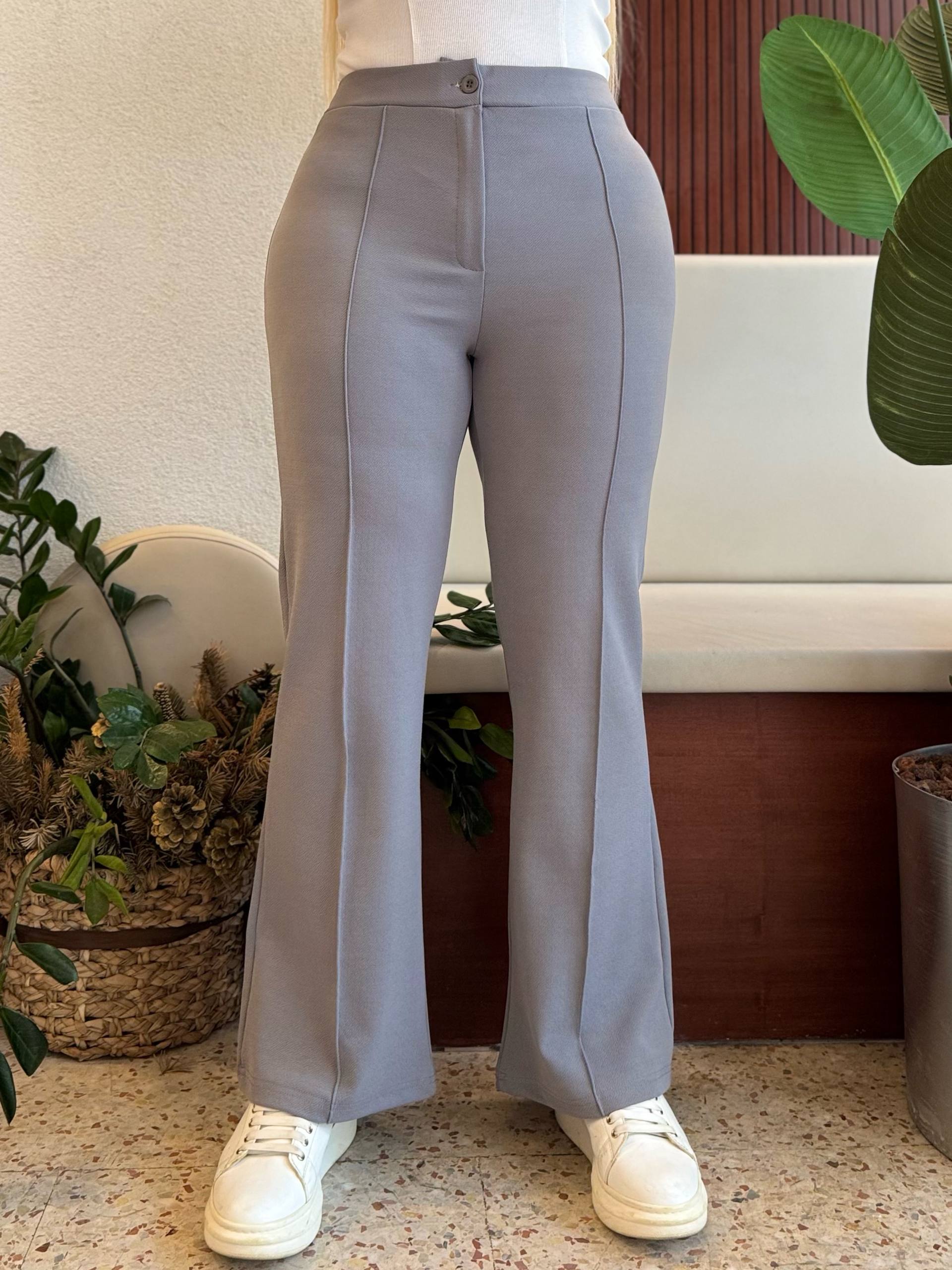 KADIN BÜYÜK BEDEN FERMUARLI ÜTÜ ÇİZGİLİ LİKRALI İSPANYOL PAÇA PANTOLON
