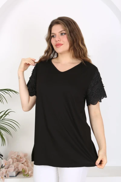 KADIN BÜYÜK BEDEN KOL FİSTO DETAY ESNEK VİSKON BLUZ MANKEN 44 BEDEN 1.75 BOYUNDA - LİKRALI VİSKON KUMAŞ