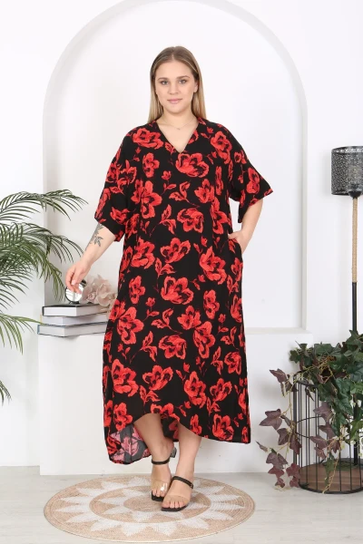 KADIN BÜYÜK BEDEN CEPLİ V YAKA DOKUMA VİSKON ELBİSE MANKEN 44 BEDEN 1.75 BOYUNDA - PAMUKLU DOKUMA VİSKON KUMAŞ
