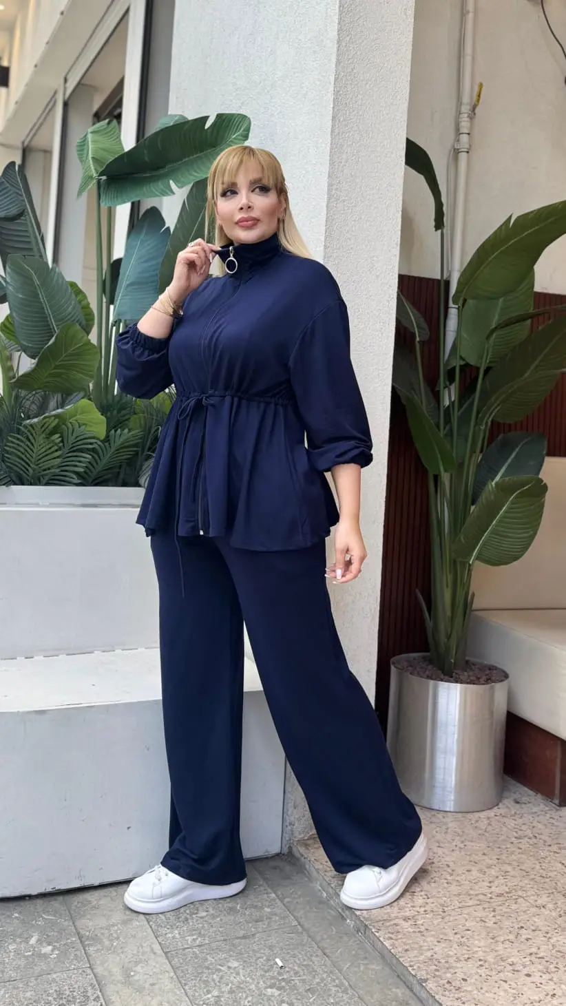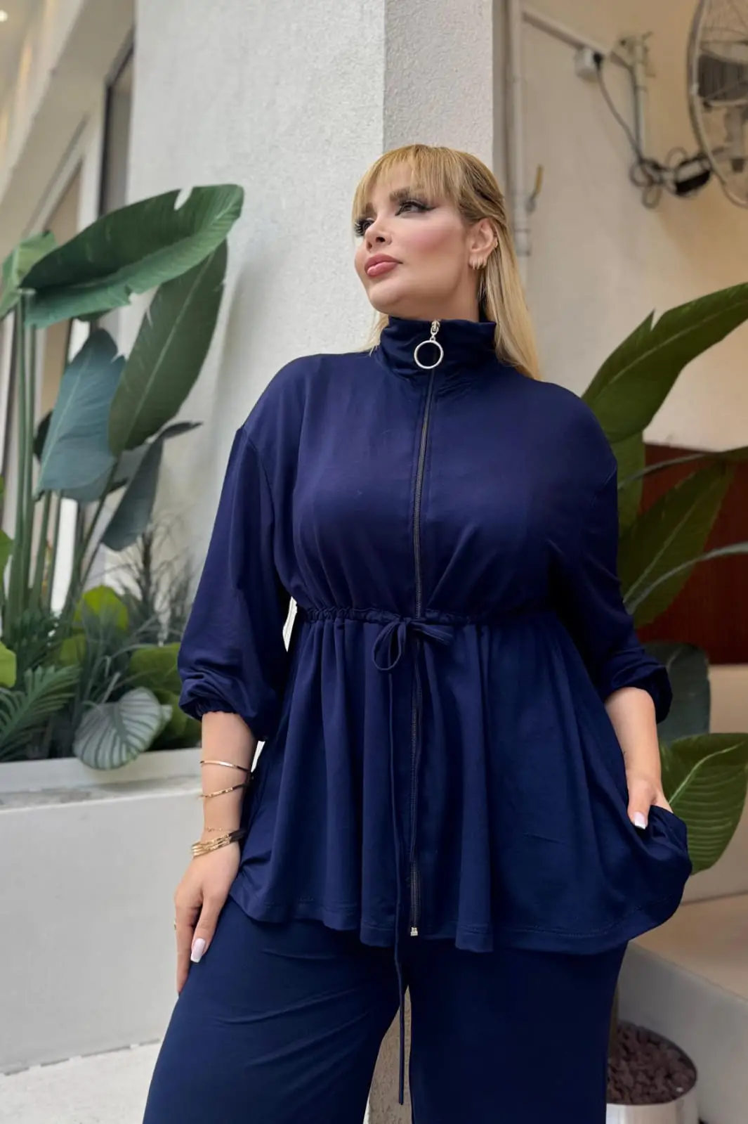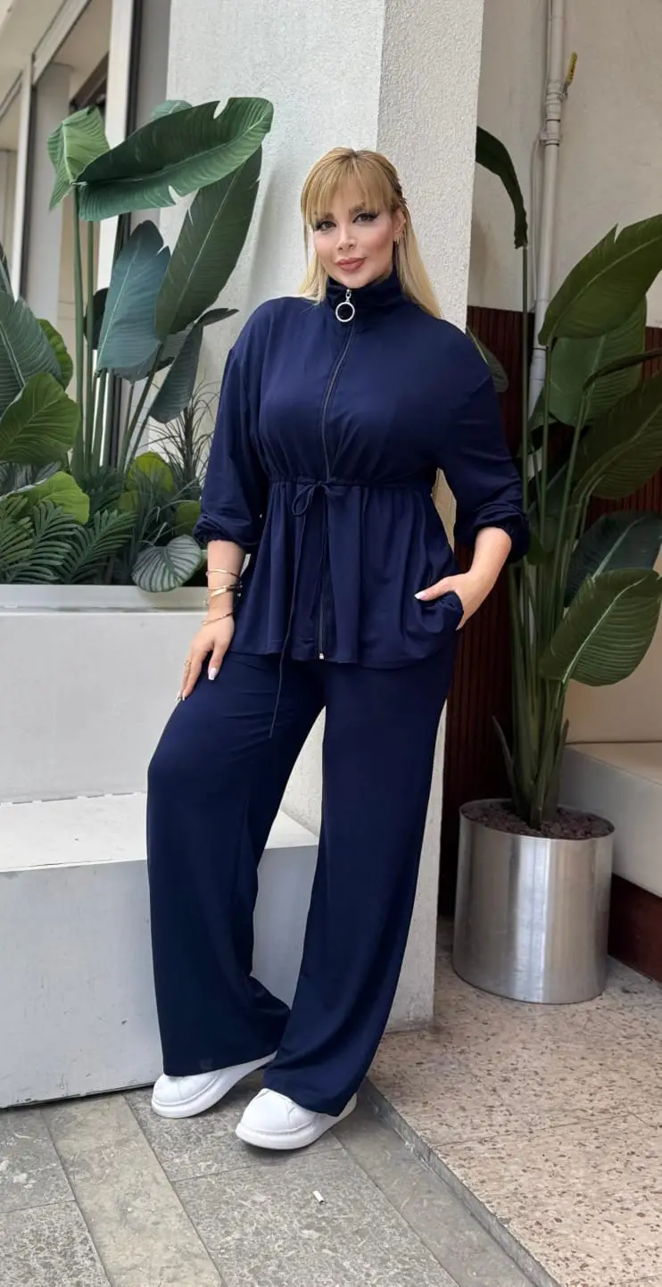 KADIN BÜYÜK BEDEN BEL BAĞLAMALI SALAŞ KESİM LİKRALI KRİSTAL İKİ İPLİK TAKIM