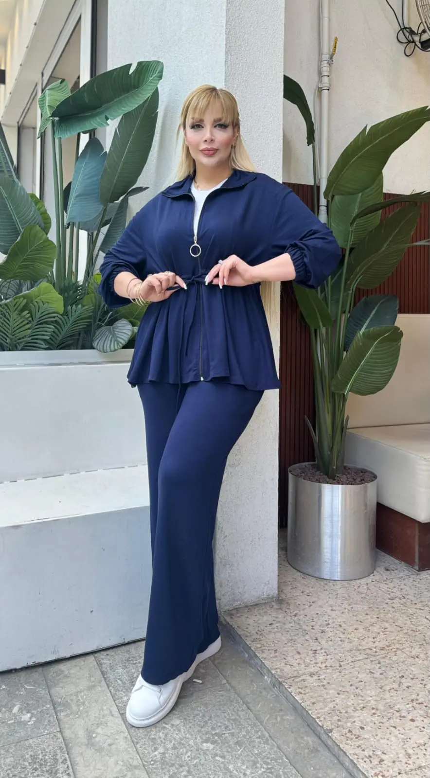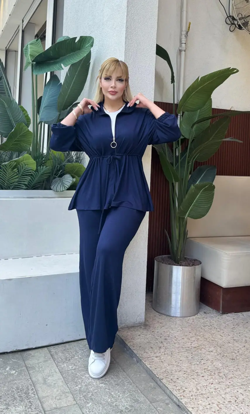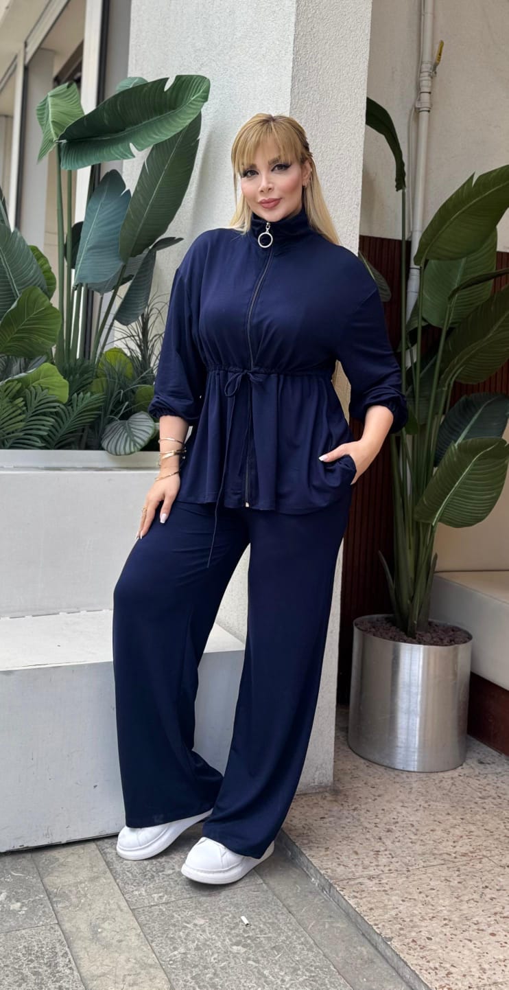 KADIN BÜYÜK BEDEN BEL BAĞLAMALI SALAŞ KESİM LİKRALI KRİSTAL İKİ İPLİK TAKIM