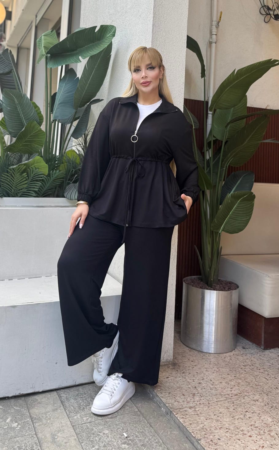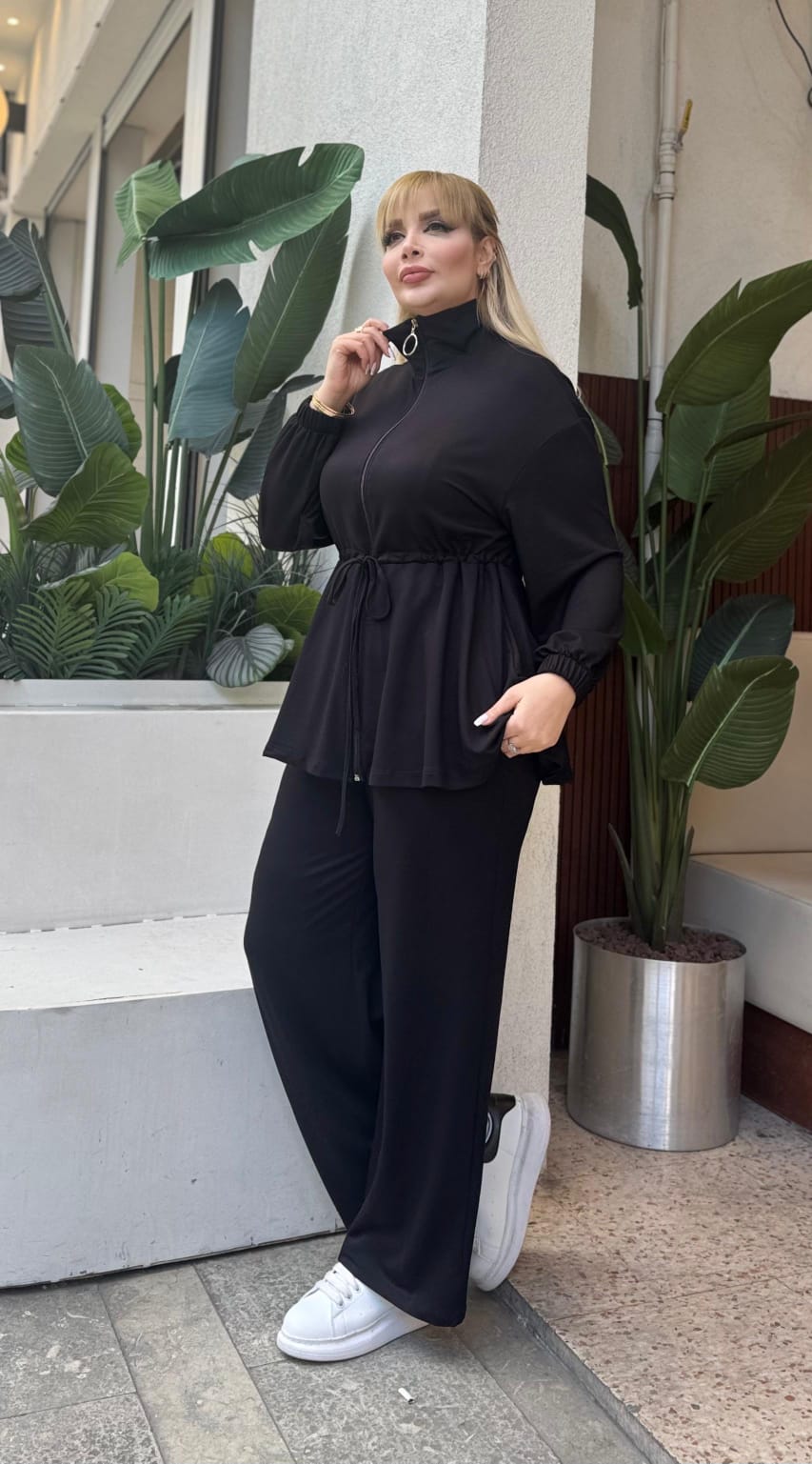 KADIN BÜYÜK BEDEN BEL BAĞLAMALI SALAŞ KESİM LİKRALI KRİSTAL İKİ İPLİK TAKIM
