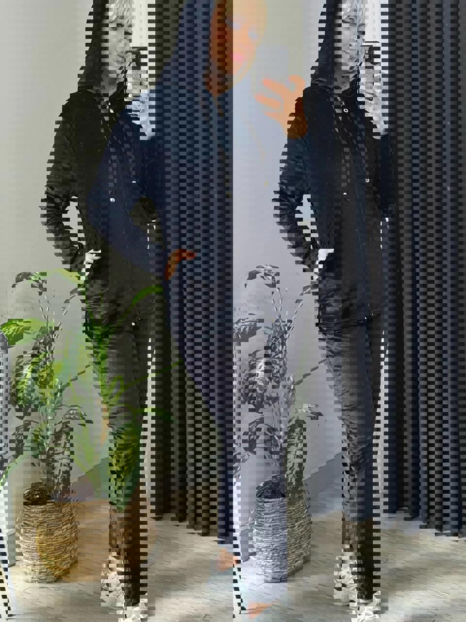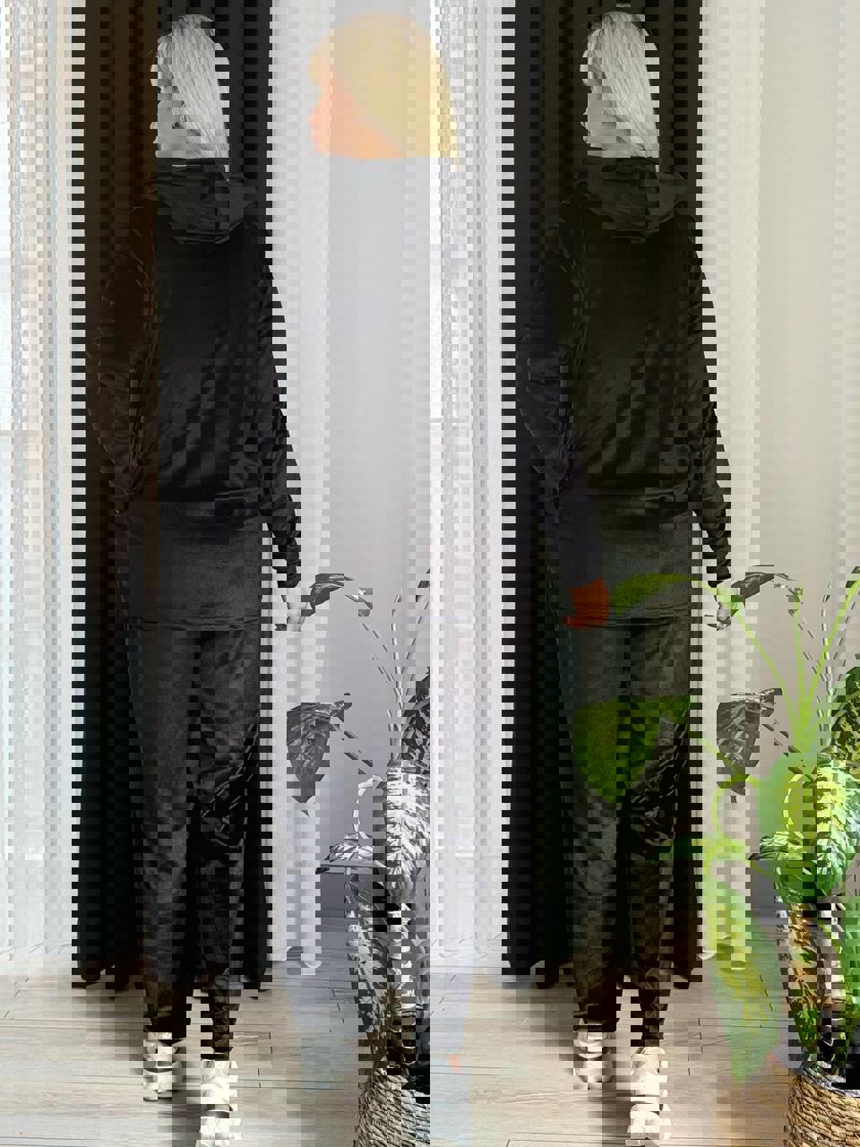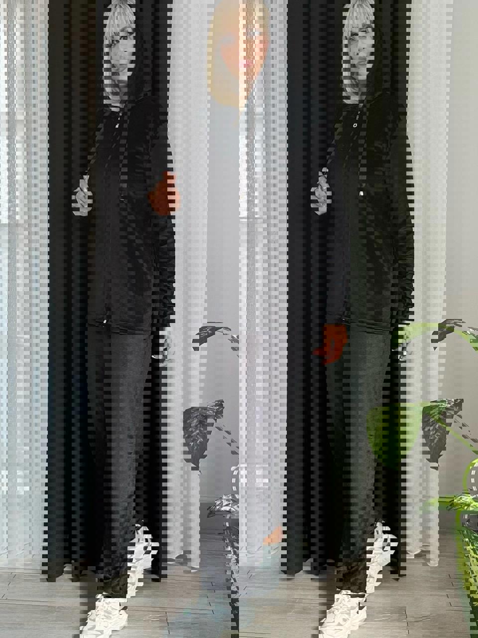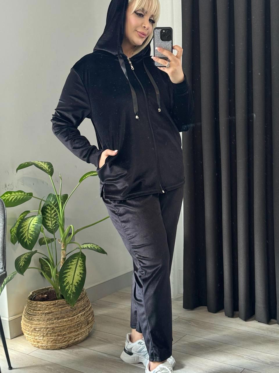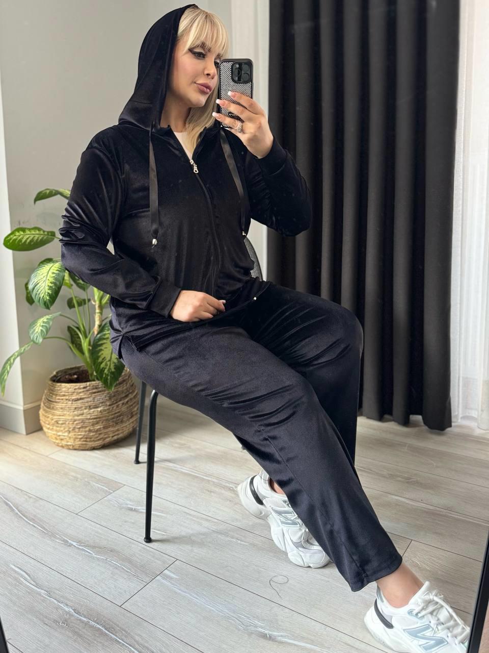 KADIN BÜYÜK BEDEN KAPŞONLU FERMUARLI ESNEK İTHAL KADİFE TAKIM