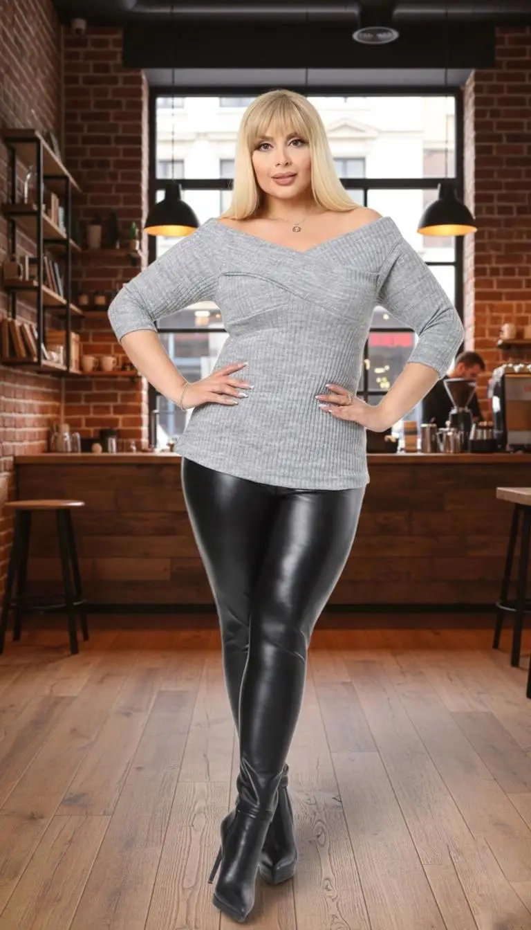 KADIN BÜYÜK BEDEN DEGAJE YAKA TRİKO BLUZ