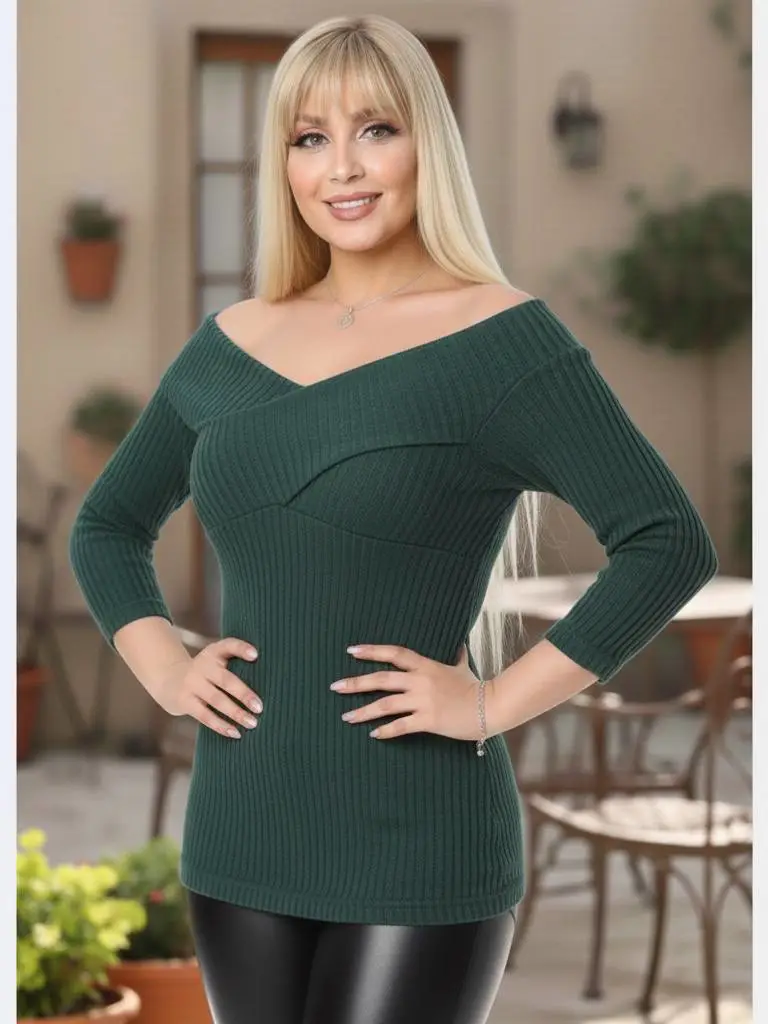 KADIN BÜYÜK BEDEN DEGAJE YAKA TRİKO BLUZ