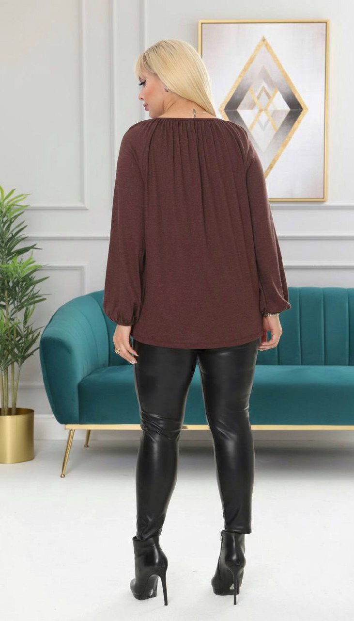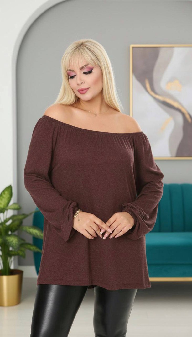 KADIN BÜYÜK BEDEN MADONNA YAKA YÜNLÜ VİSKON BLUZ