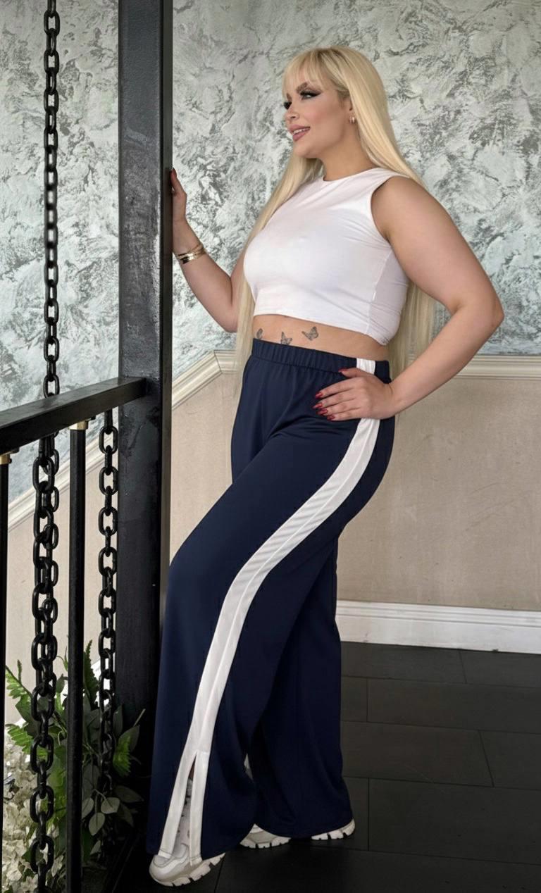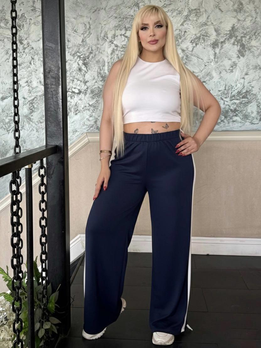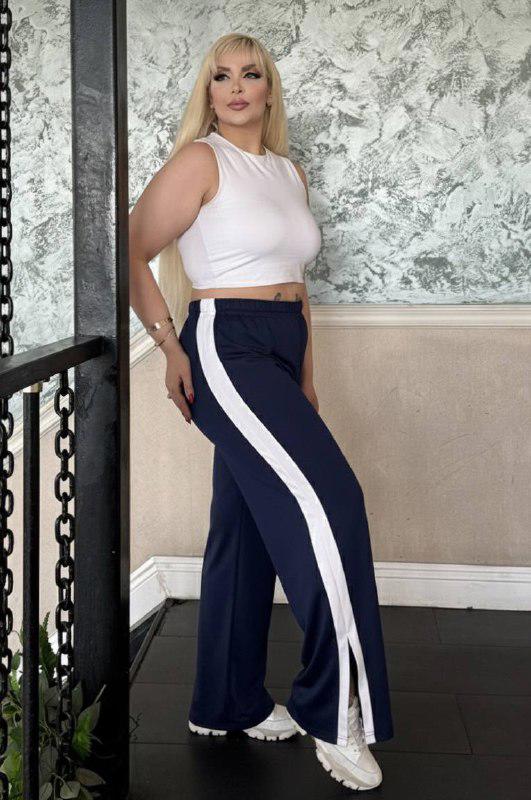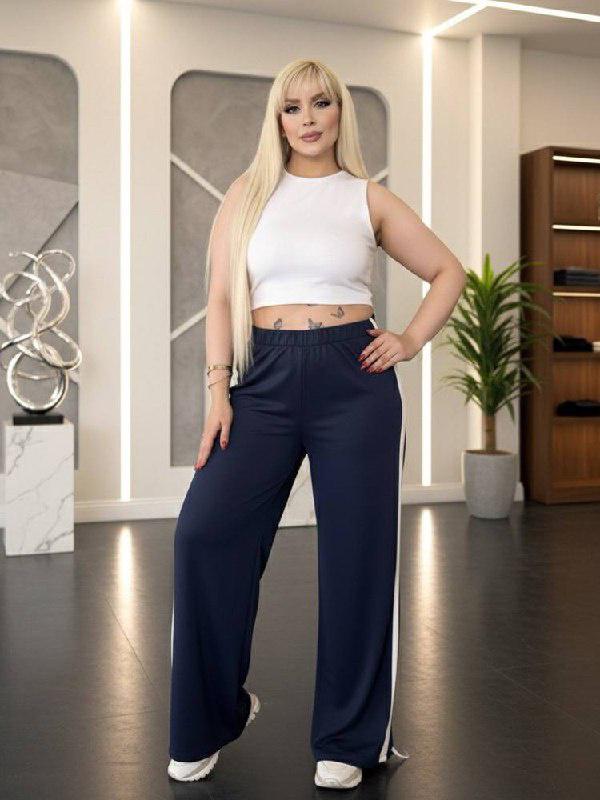 KADIN BÜYÜK BEDEN YANLARI YIRTMAÇLI ESNEK KRİSTAL PANTOLON